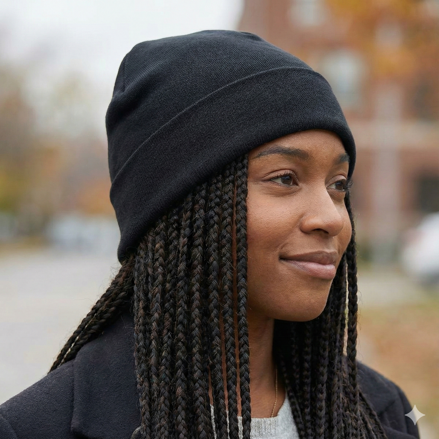Ja! De buitenkant is gemaakt van hoogwaardig, rekbaar gebreid materiaal dat zich vormt naar je hoofd. De satijnen binnenkant is ruim genoeg ontworpen om ook voller haar, krullen of vlechten comfortabel te bedekken zonder te knellen.